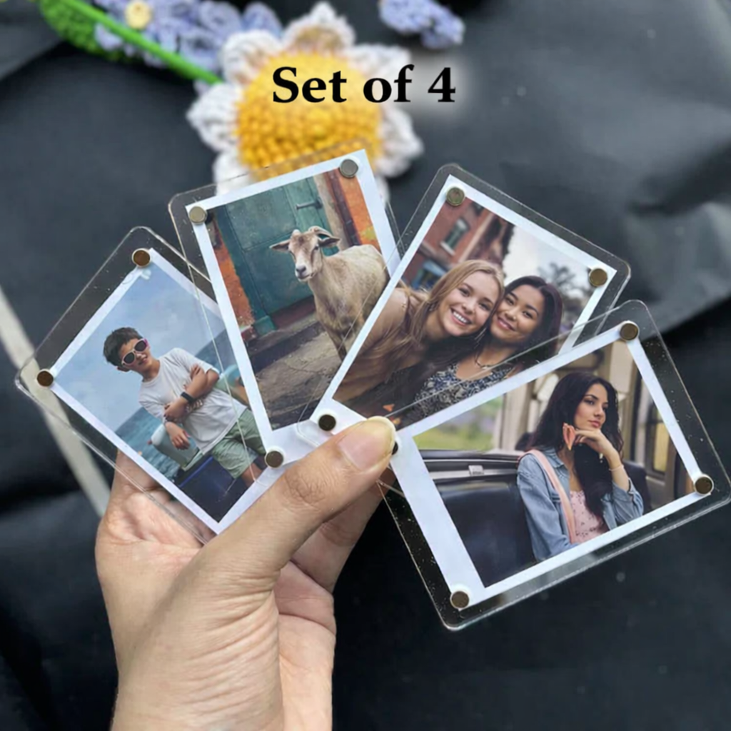 Display your favorite memories with our personalized acrylic photo polaroids that work as both a fridge magnet and tabletop photo frame. This premium 2-in-1 acrylic photo frame (4×3 inch) is perfect for home décor, gifts, and return favors. Stylish, durable, and loved by everyone! ✨