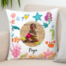 Customized 12×12 White Cushion with Photo & Name | Underwater Theme 2 – Personalized Gift