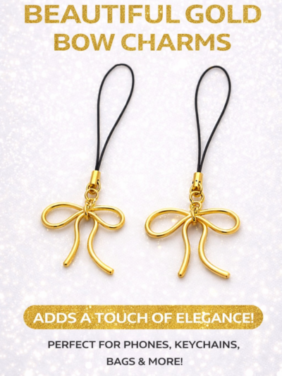 set of 2 Bow Phone Charm – Elegant Gold Mobile Accessory | Gift for girls | Trending phone charms