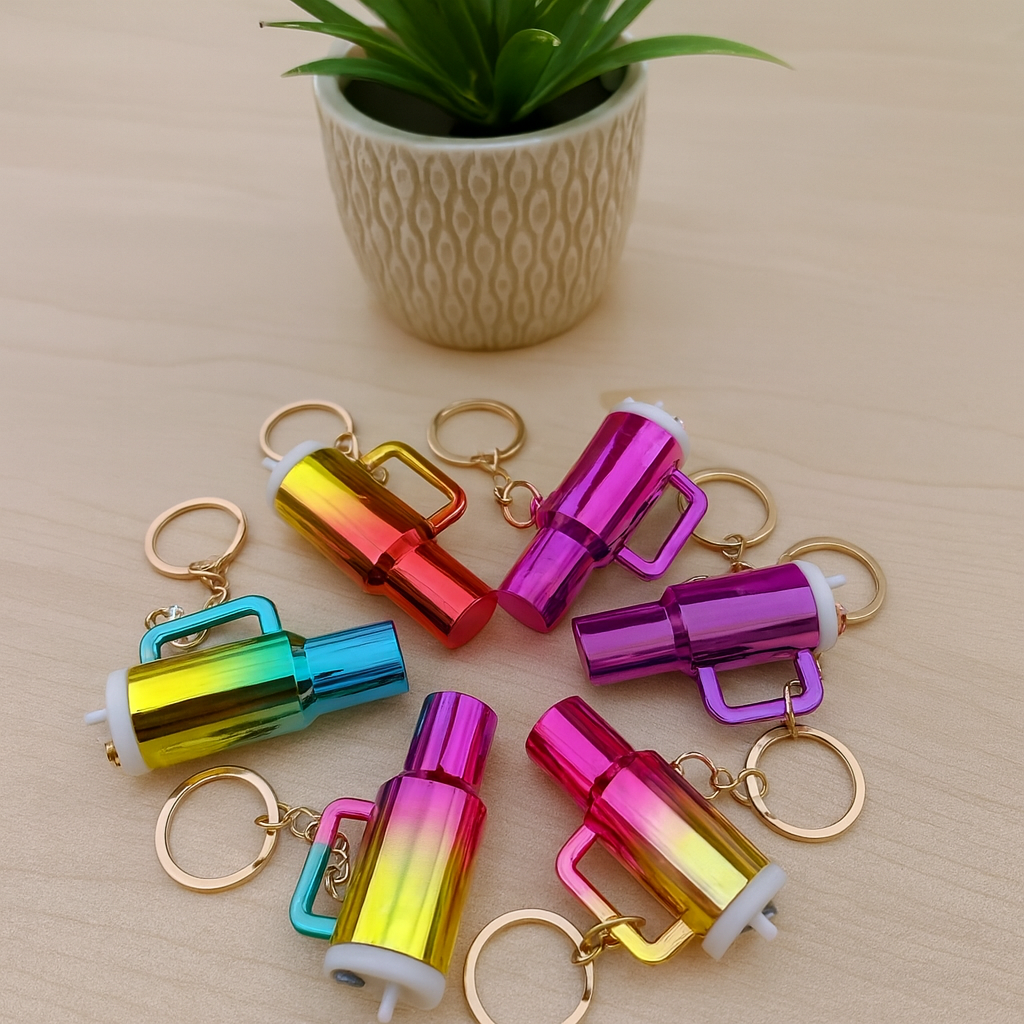 Our Mini Tumbler Keychains / Bag Charms are designed for those who love quirky yet practical accessories. Shaped like trendy travel tumblers, these cute keychains come with a double-gradient color finish and a tiny straw & lid design that makes them absolutely irresistible.