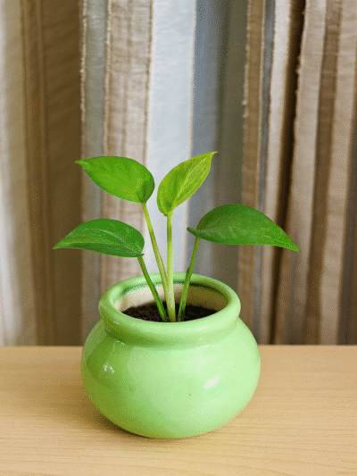Ceramic Matki Pot with Money Plant – Eco-Friendly Table Decor | Random colour